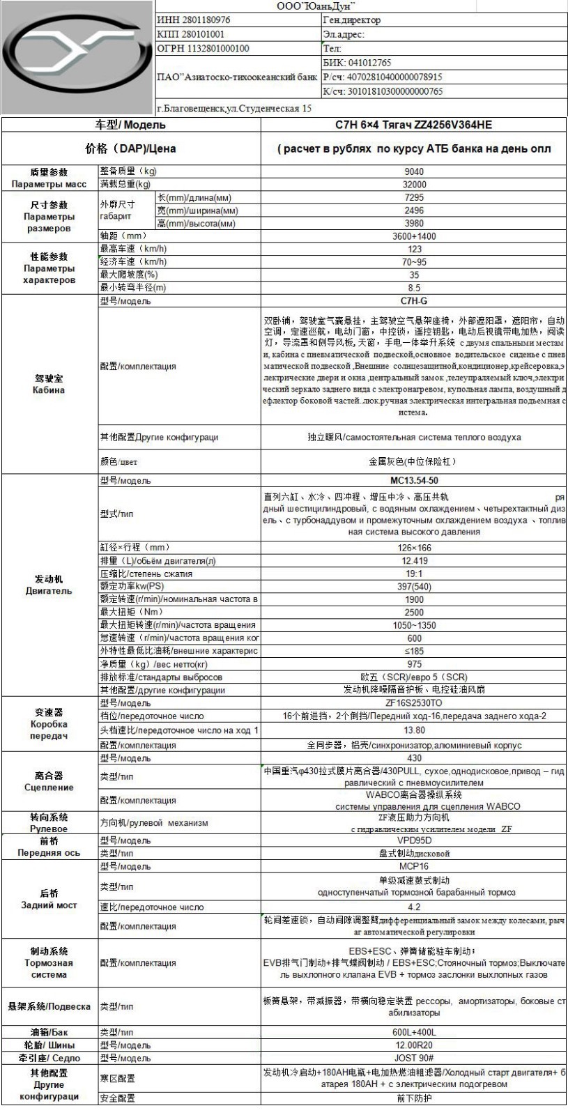 C7H 6*4 牽引車邊減